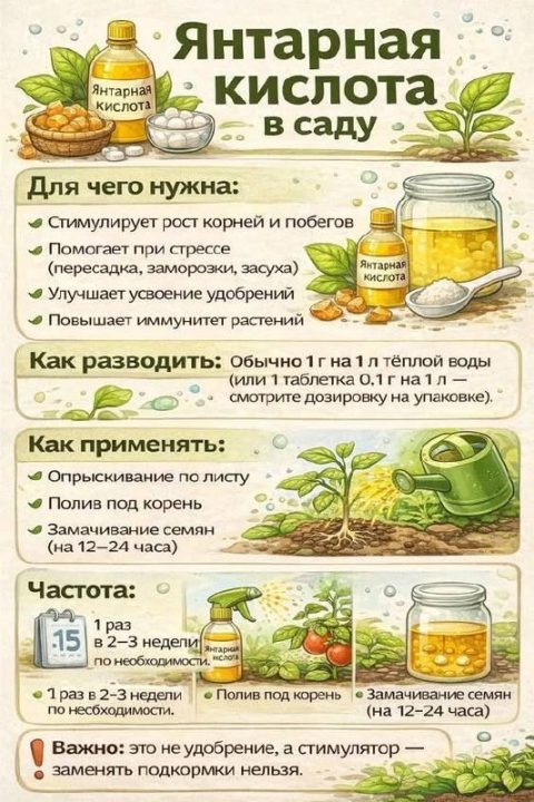 🔬 Что это и как работает: 1. Янтарная кислота — природное биостимулирующее вещество — участвует в обмене веществ растений,...