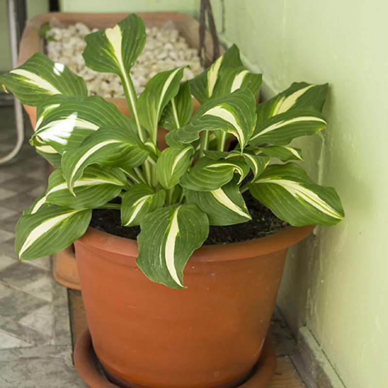 🌱 Как использовать хосту в фитодизайне:Контейнерный акцент — посадите крупную хосту в широкое неглубокое кашпо для мощного листового акцента на тёмном балконе или веранде