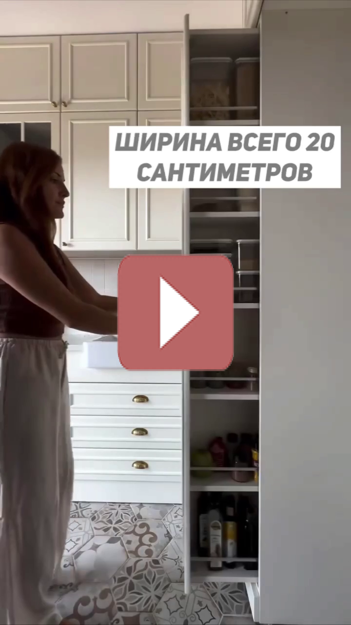 - Вертикальное хранение: высокий шкаф позволяет разместить специи, бутылки, противни и мелкую бытовую технику компактно и под рукой.