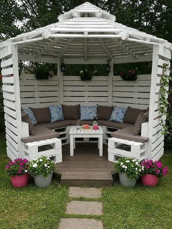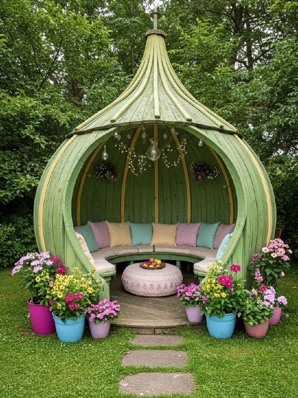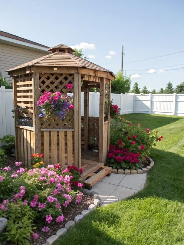 - Вертикальное озеленение — стены, перголы и шпалеры создают глубину без потери площади