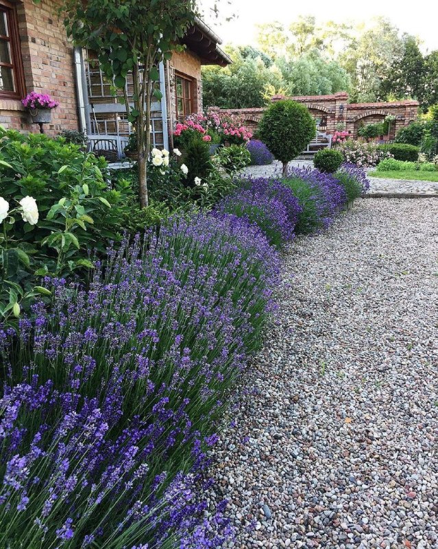 💡 Совет: — высаживайте лаванды на небольшой насыпной грядке (5–10 см) с добавлением крупного песка — это улучшит дренаж и продлит жизнь растений🎨 Вариация: — используйте смесь низкорослых и среднерослых сортов: низкие ближе к дорожке, высокие у внешнего края для ступенчатого эффекта📐 Расчёт: — при междурядье 30 см (длина куста 25–40 см) требуется ~3–4 растения на погонный метр; для полукруга радиуса 2 м понадобится ~18–25 растенийЛайфхак: — саженцы в контейнерах можно высаживать группами по 3 в лунку — это ускорит посадку и даст плотный, декоративный бордюр с первого сезона