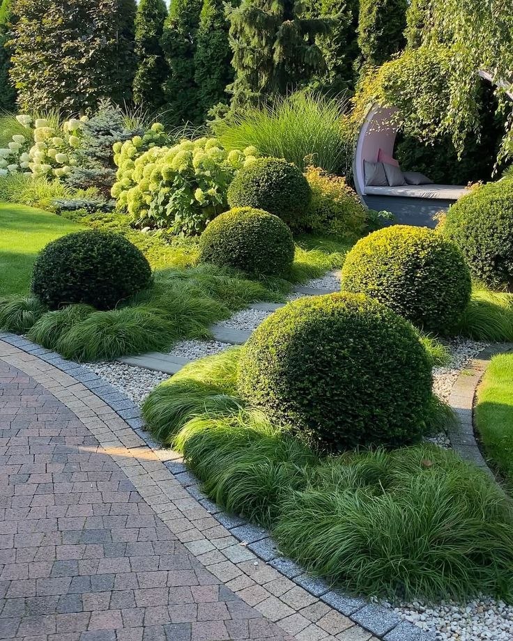1. Камень и плитка — выделяют дорожки и террасы, важен контраст с мягкой растительностью