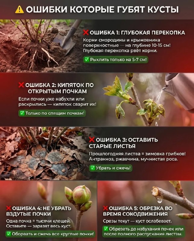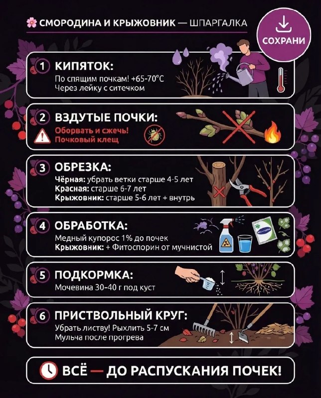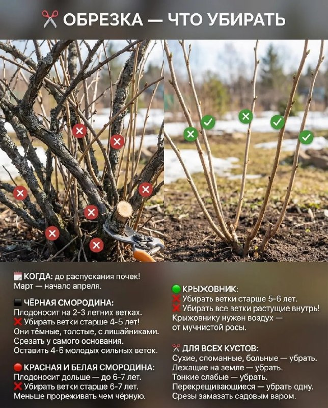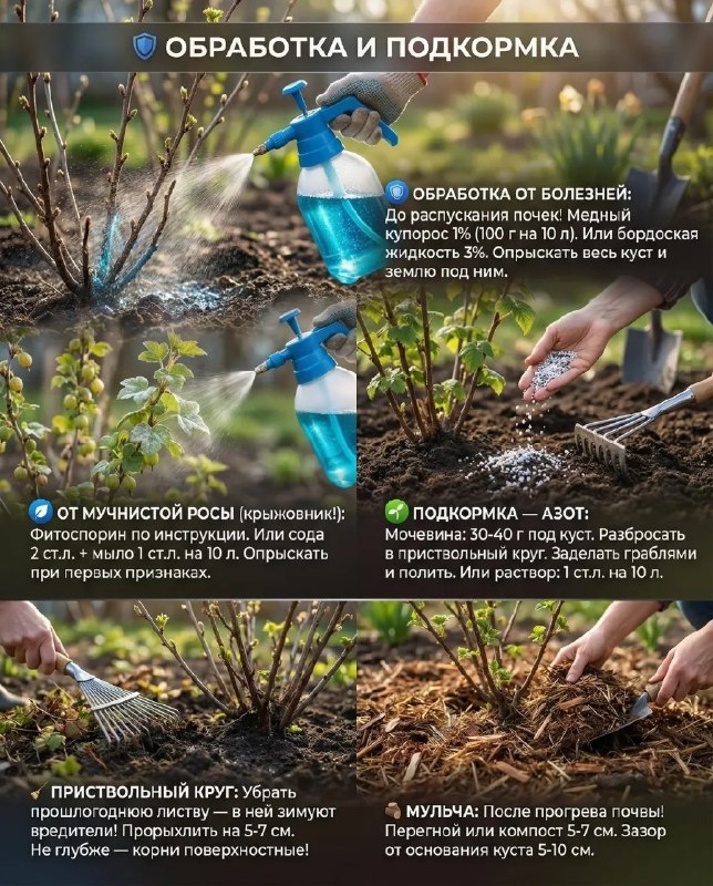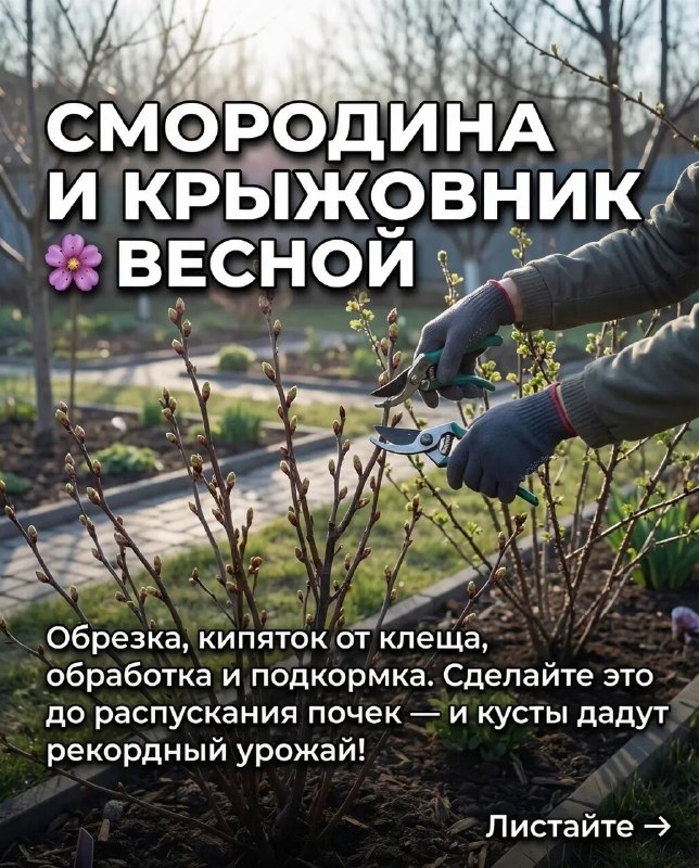 🌱 Весенний уход за смородиной и крыжовником — сделайте это до распускания почек