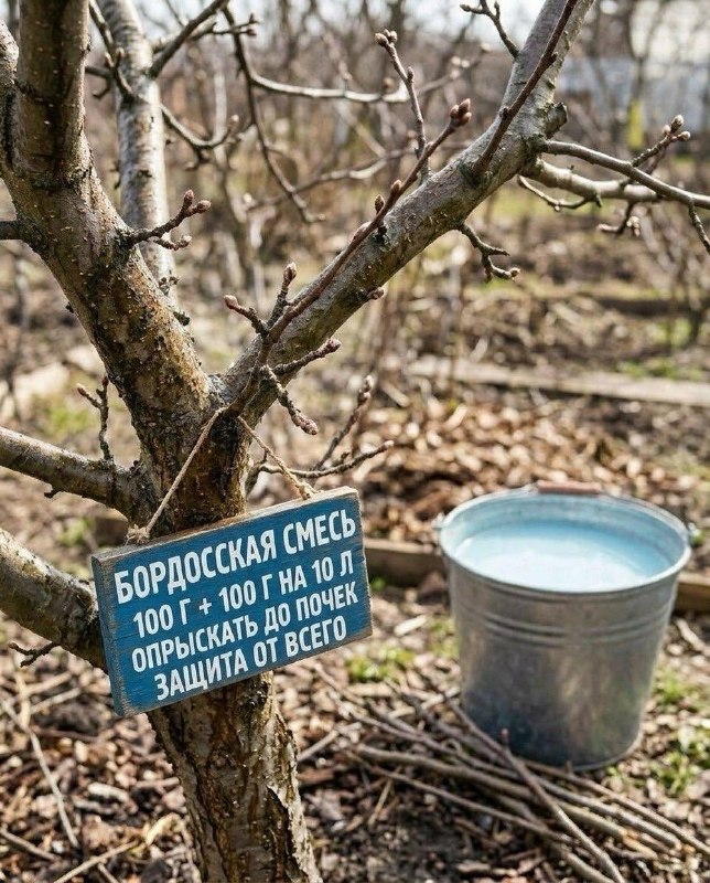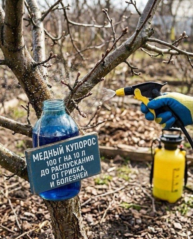 2. Первую обработку проводите до набухания почек — медный купорос или бордосская смесь по инструкции