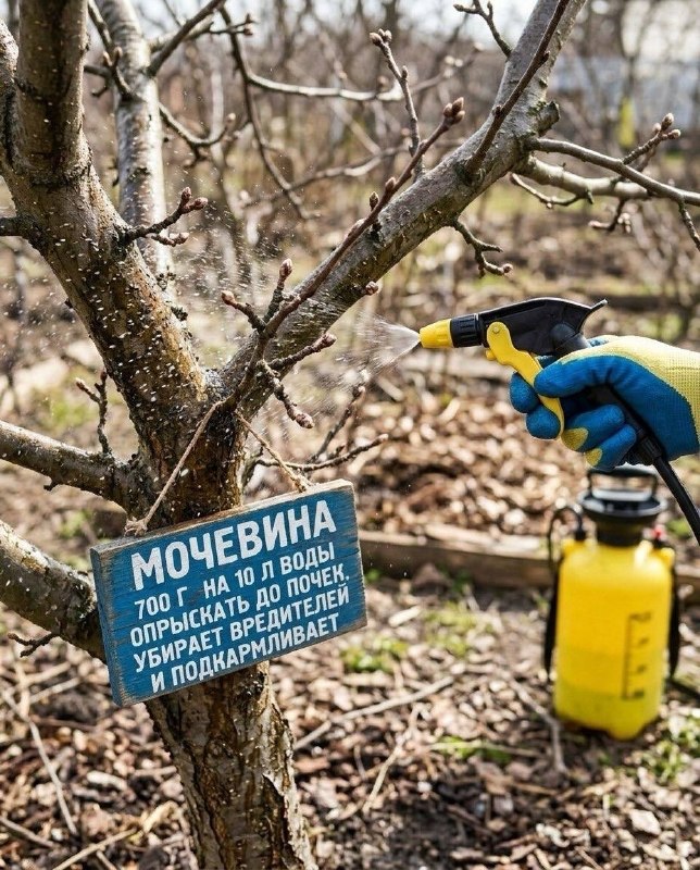 1. Мочевина — для уничтожения зимующих вредителей и стимуляции почек