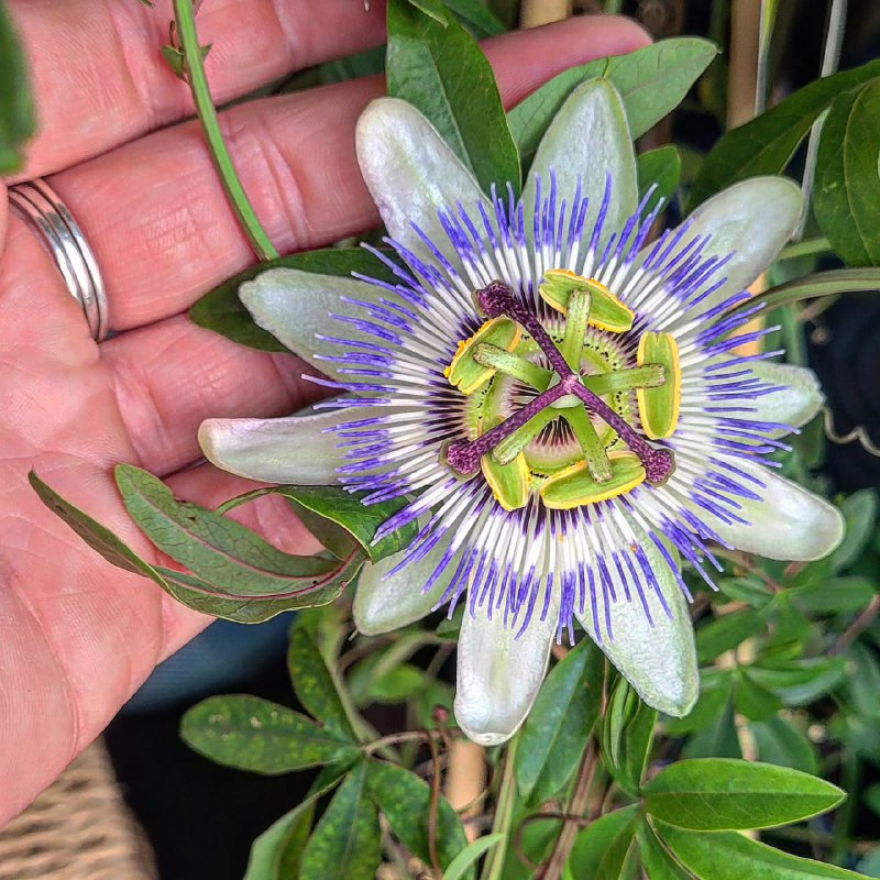Пассифлора, или «страстоцвет», — экзотическая лиана с пальчатыми листьями насыщенного зелёного цвета