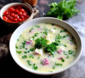 - Влить воду и сливки, довести до кипения. Добавить шпинат, посолить и поперчить по вкусу.