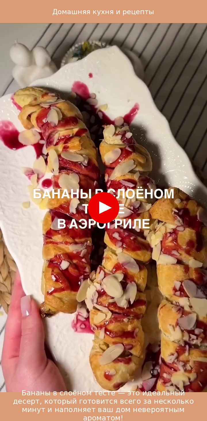 🍳 Ингредиенты Слоёное тесто Бананы 🔥 Приготовление Разогрейте духовку Растяните слоёное тесто Заверните бананы в тесто Выпекайте до золотистой корочки.Приятного аппетита! 🥗 Категория блюда: 🧂 Ингредиенты: 🍝 Кухня