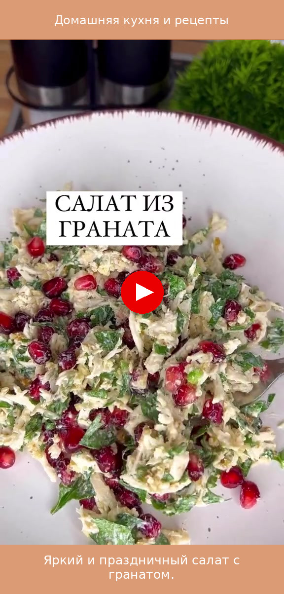 🍳 Ингредиенты куриное филе - 300 гр грецкий орех - 100 гр гранат - 1 шт кинза/ петрушка - пучок чеснок - 3 зубчика майонез - 4 ст. л 🔥 Приготовление Отварите куриное филе и нарежьте его кубиками Измельчите грецкие…